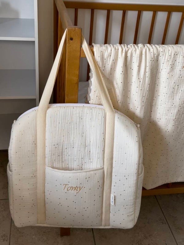 Entièrement personnalisable, il comporte 6 poches intérieures et 3 poches extérieures, ce sac à langer est idéal pour y ranger toutes les affaires de bébé.