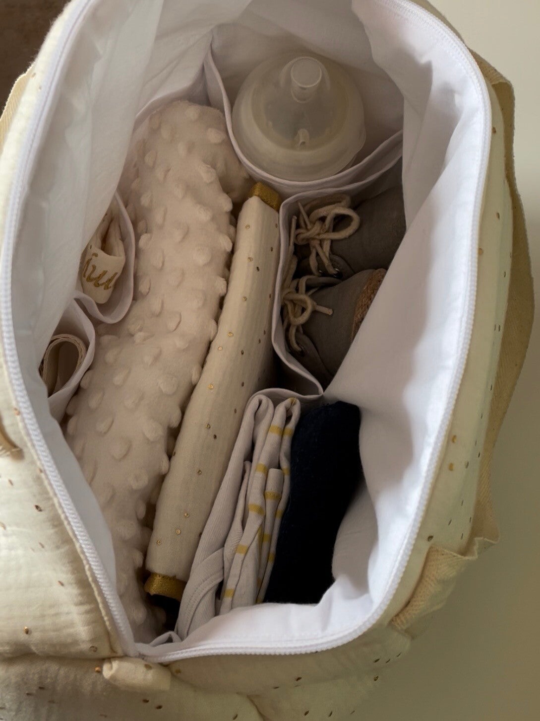 Une balade avec bébé ? Oui, mais à condition d'emporter le nécessaire ! couches, langes, lingettes, biberons, carnet de santé,ect.